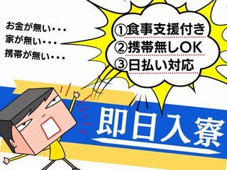 「お金がピンチな方へ 」/日払いOK/最短即日対応/製造 「100%住み込み、寮付き求人」工場staff【契約社員】